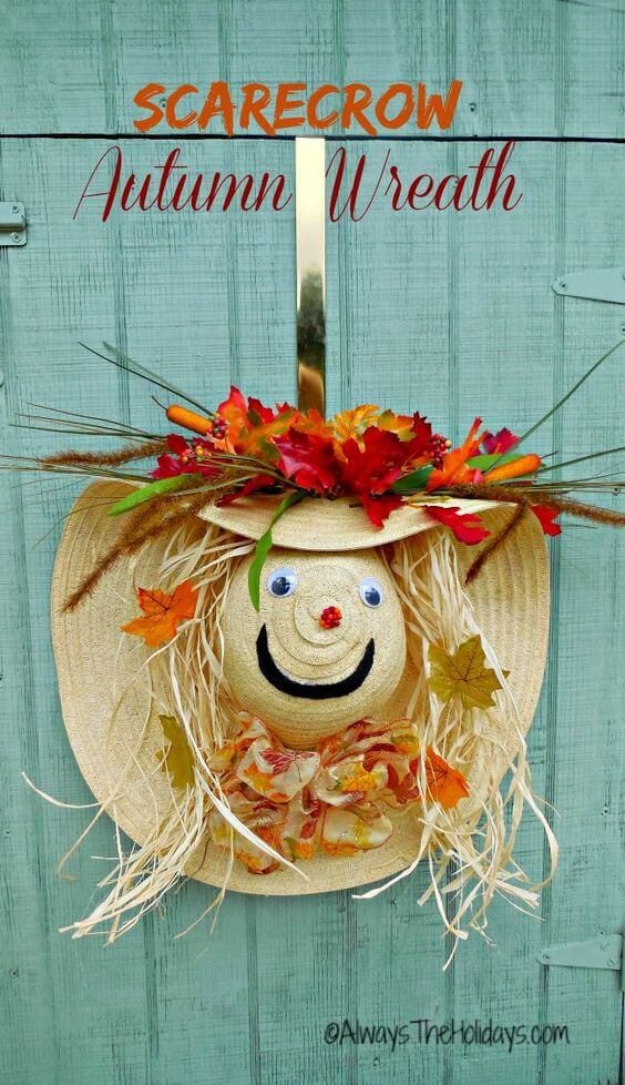 #5 Scarecrow Wreath Using A Straw Hat
