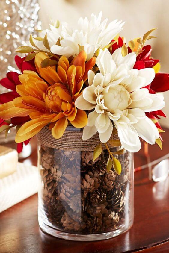 The Fall leaves, pumpkins, pine cones, colorful fall flowers, and gourds are endless inspirations. Check out 23 Easy and Cheap Fall Decorating Ideas to bring fall colors into your home with these simple decorating projects.