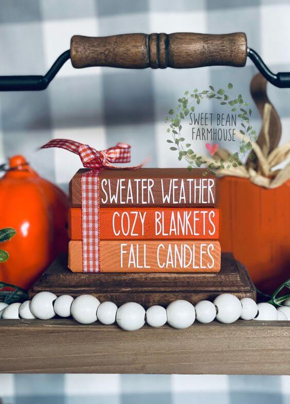 #14 Fall Mini Faux Wood Book Stack Tiered Tray Decor