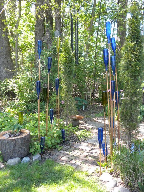 Save them and make some for the next weekend. These simple ideas will inspire you to create stylish and colorful design features in the garden using wine bottles.