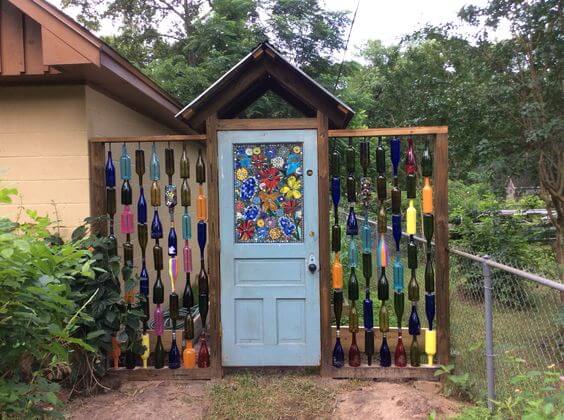 #14 Garden Fences Made From Old Doors And Wine Bottle