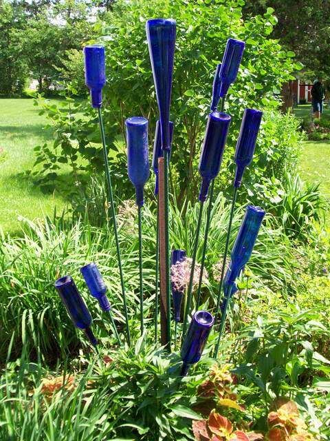 #23 Blue Bottles And Copper Pipe Instead Of An Arbor For The Entrance To A Garden