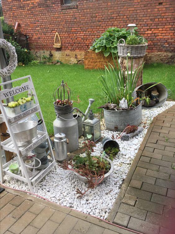 #8 A Low-maintenance Garden Idea with White Rocks and Succulents
