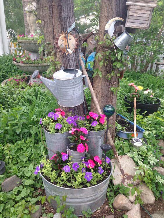 By repurposing these classic buckets, you infuse your garden with a touch of rustic charm and creativity. The tiered design of these planters adds visual interest and provides an excellent solution for growing multiple plants in a compact space.