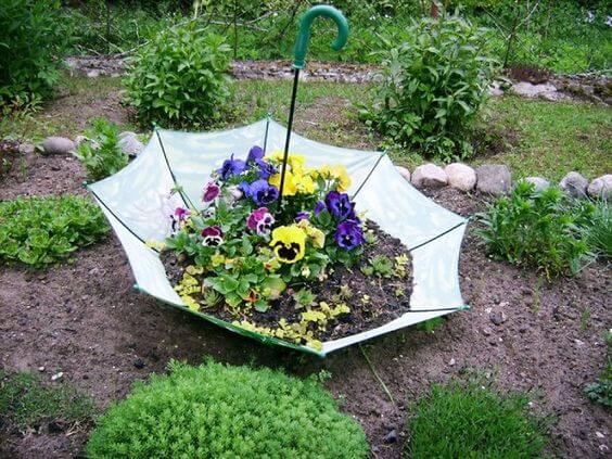 Don’t toss out your old umbrella. Save it and try turning it into the idea below. Using it as a planter by filling it with soil, not only showcases your gardening creativity but also recycles and breathes new life into old umbrellas, making it a sustainable and imaginative way to display your favorite plants and flowers.