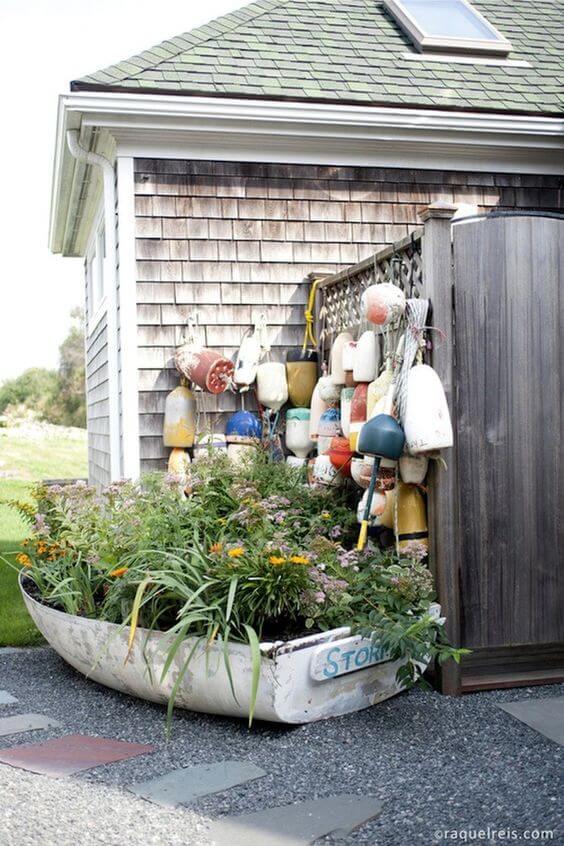 Transform your old boat to give it a second life and use it as a flower planter! Simply fill it with soil and plant your favorite flowers.