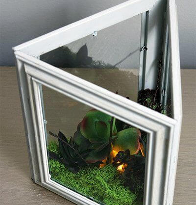 Turn a few old picture frames into a beautiful glass terrarium that brings greenery indoors. By attaching the frames together, you create a little greenhouse perfect for succulents, moss, or tiny plants.