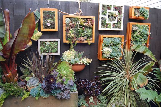This wall of framed succulents feels like stepping into a living art gallery. Each frame is filled with a unique arrangement of textures, colors, and shapes, turning an ordinary fence into a stunning garden feature.