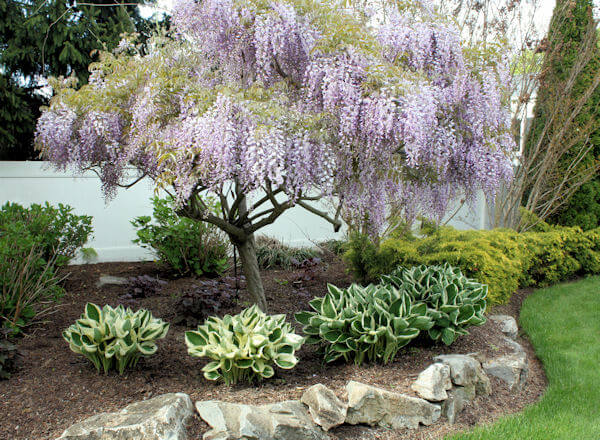 Wisteria vines are famous for their cascading clusters of purple or white flowers. Plant them with strong support since they grow vigorously. Choose a sunny spot and fertile soil for the best blooms.