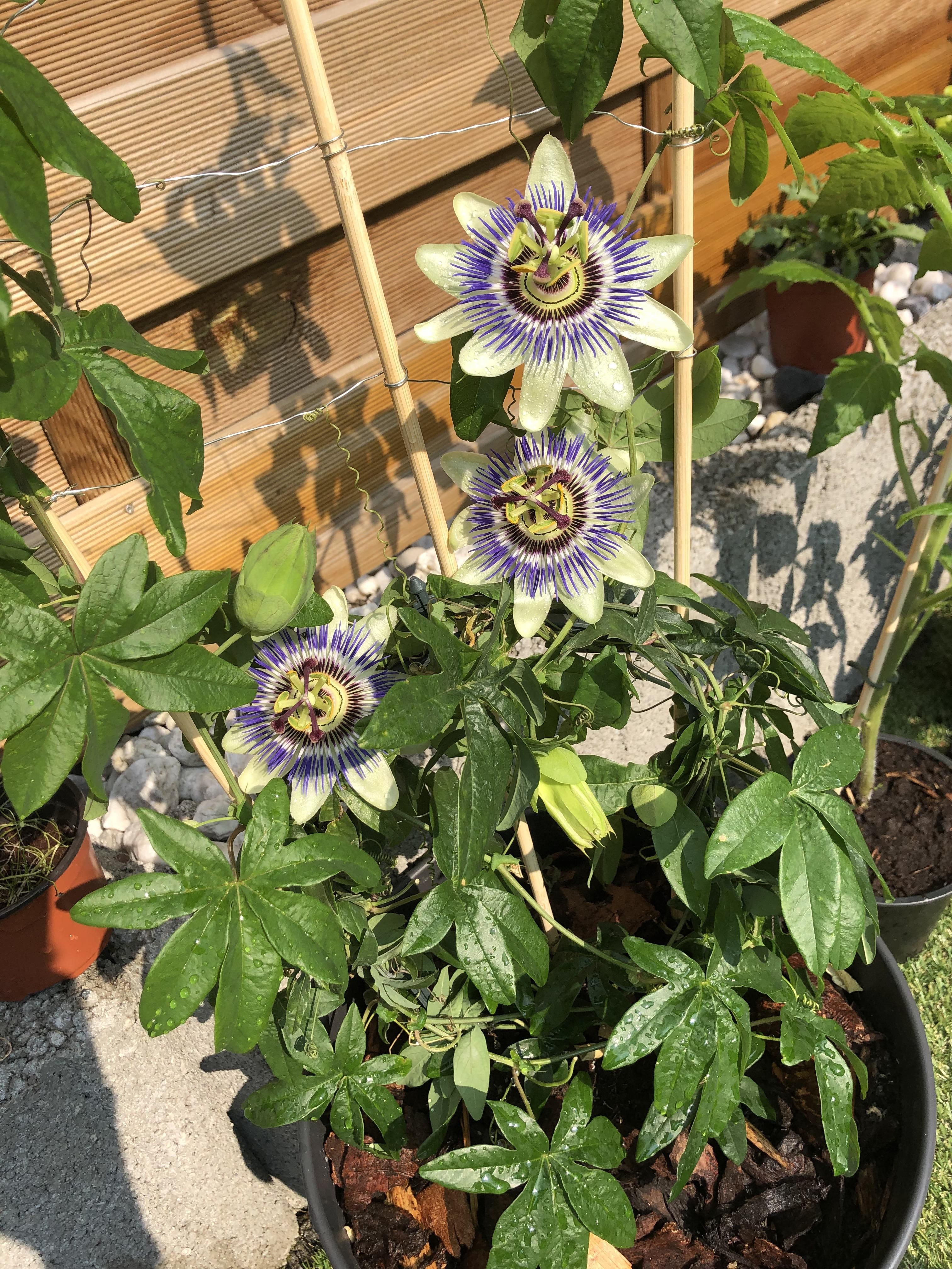 Passion Flower vines look exotic with their intricate blooms in shades of purple and blue. They climb easily with tendrils that grab onto trellises or arbors. Plant it in well-draining soil and water regularly to encourage fast growth.
