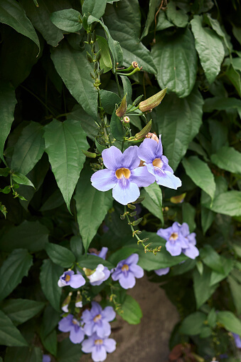 Blue Trumpet Vine produces large, trumpet-shaped flowers in shades of blue and violet. It s a vigorous grower, quickly covering fences and pergolas. Plant it in well-drained soil with access to full sun.