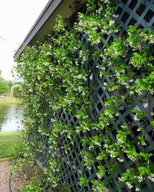 Confederate Jasmine brings glossy green leaves and clusters of star-shaped white flowers that perfume the air. You can train it on a pergola or fence for quick coverage.