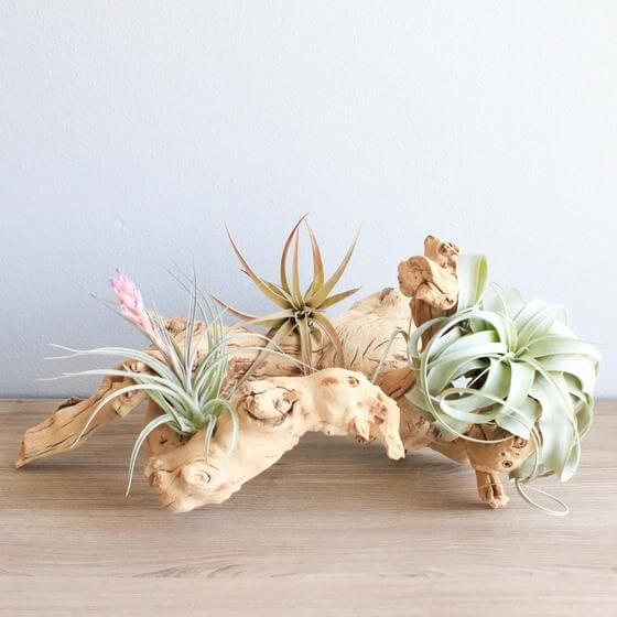 They can be grown well in any material, from wine corks, logs, even a glass cup, a cement embellished piece of art, a piece of driftwood, or pretty much anything. There are many options and you can make great your own DIY air plant holders.