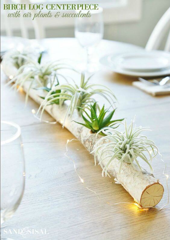 #8 Birch Log Centerpiece with Air Plants and Succulents