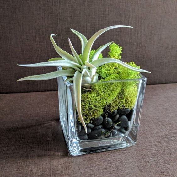 #10 Air Plant Square Glass Vase Terrarium With Green Reindeer Moss