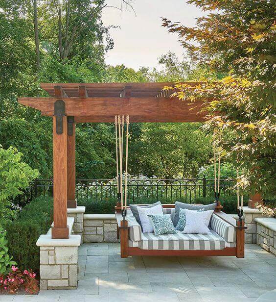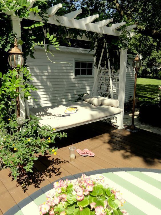 A hanging backyard swing on a shaded with green trees always makes for a relaxing early morning or late afternoon. If you need to add some shade to your space, try a pergola. In addition to projects for adults to unwind, there are some for your kids that they will fall in love with and prefer playing on it.