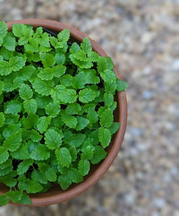 Lemon Balm is aromatic and soothing, perfect for teas and desserts. It grows well in medium pots with partial sunlight. Keep the soil moist but not soggy.