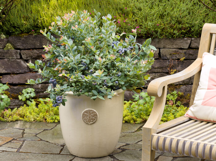 Blueberries are a wonderful container fruit that brings beauty and sweetness. They need acidic soil, so use a mix designed for azaleas or rhododendrons. Place them in full sun for maximum fruiting.