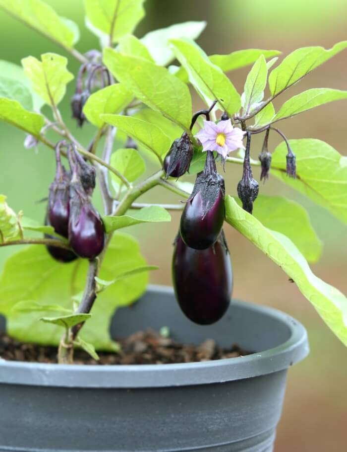 Eggplants thrive in warm conditions, making containers perfect for them. Use a large pot with fertile, well-drained soil. Place in full sun and water consistently.