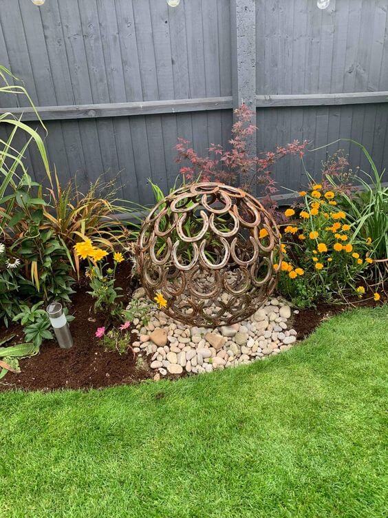 #1 Horseshoe Bowling Ball Garden Sculpture