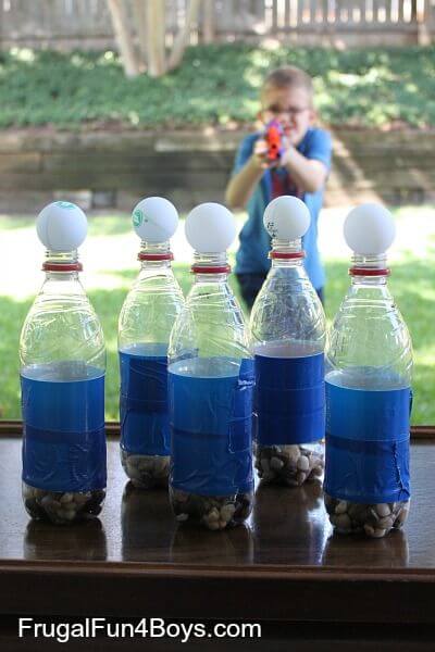 Source: Frugalfun4boysThis hands-on endeavor not only sharpens kids’ aiming skills but also encourages outdoor play and imaginative adventures. As they take aim at the plastic bottle targets they’ll enter a world of imaginative challenges and adventures