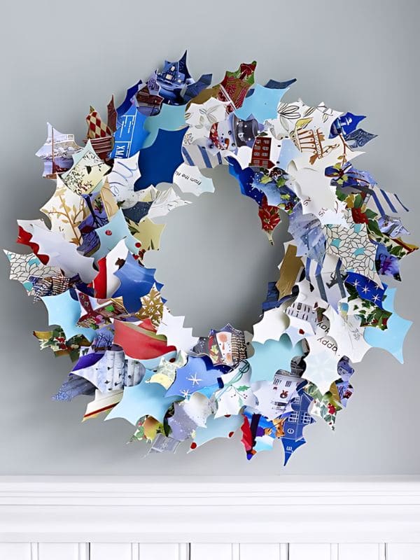 #19. Charming Holiday Card Recycled Christmas Wreath