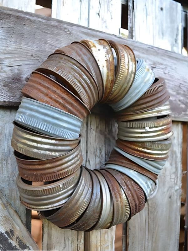 #15. Rustic Metal Lid Recycled Christmas Wreath