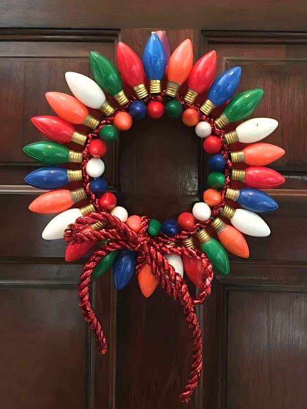 #18. Colorful Vintage Bulb Recycled Christmas Wreath