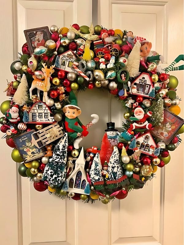 #23. Charming Broken Toy Recycled Christmas Wreath