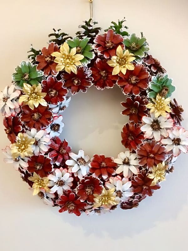#9. Vibrant Pinecone Petal Christmas Wreath