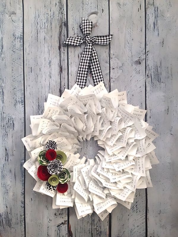 #13. Chic Sheet Music Christmas Wreath