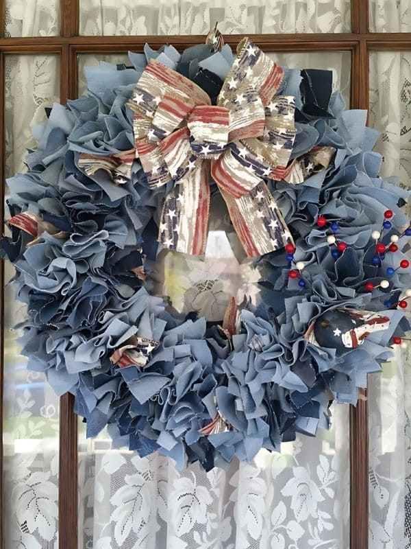 #2. Patriotic Denim Christmas Wreath