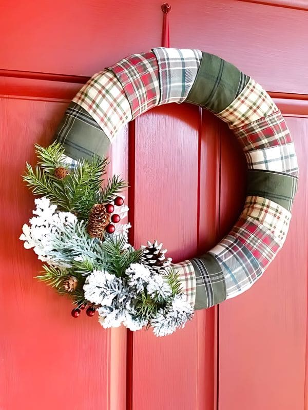 #5. Cozy Plaid Christmas Wreath