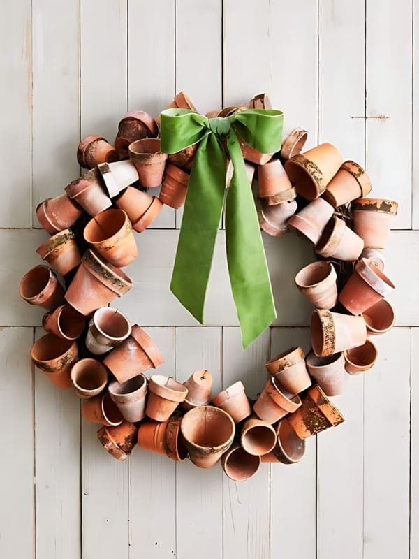 #11. Rustic Terra Cotta Pot Recycled Christmas Wreath