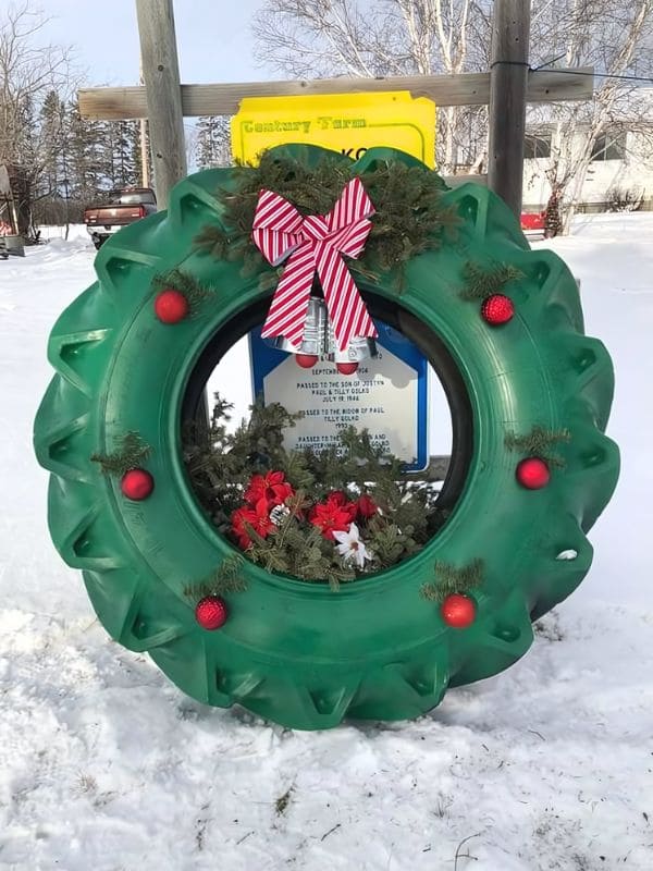 #3. Upcycled Farm Tire Christmas Wreath