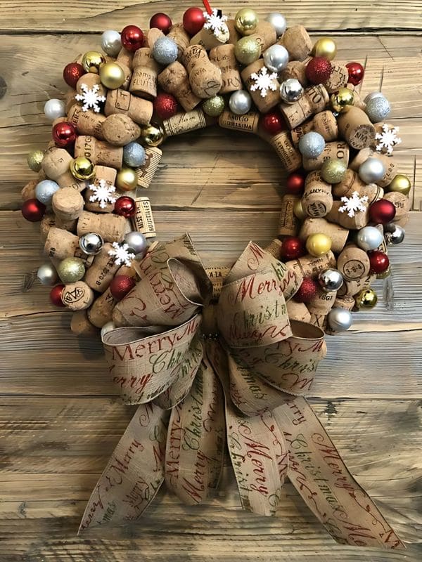 #8. Rustic Wine Cork Christmas Wreath