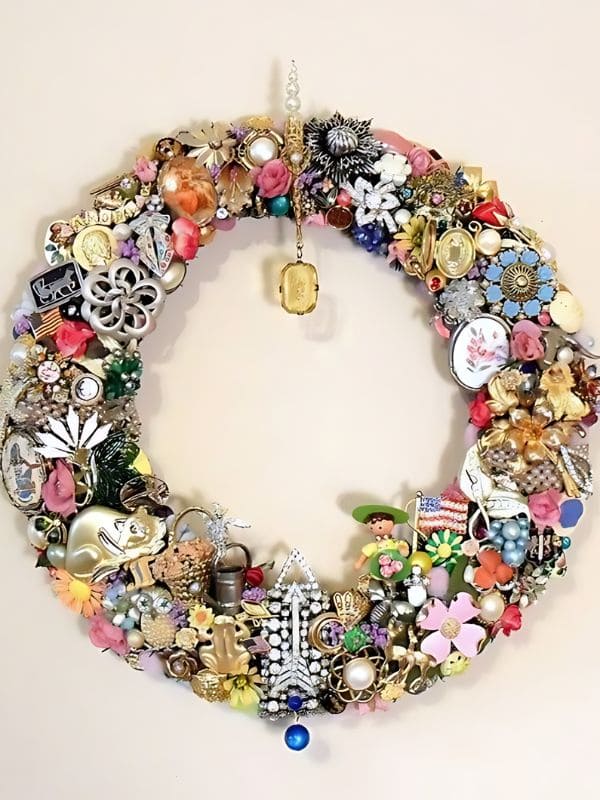 #22. Whimsical Vintage Jewelry Recycled Christmas Wreath