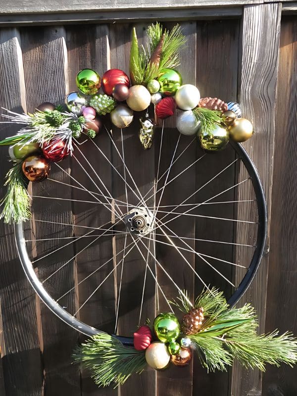 #4. Vintage Bicycle Wheel Christmas Wreath