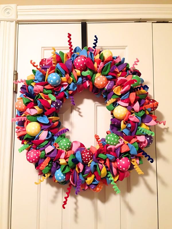 #20. Vibrant Balloon-Themed Recycled Christmas Wreath