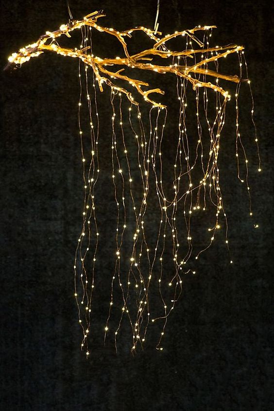 To make your own, start by finding a sturdy branch with an interesting shape and texture. Wrap it carefully with fairy lights, making sure the wire blends into the wood. Then let strands of lights hang loosely to mimic a curtain of stars.