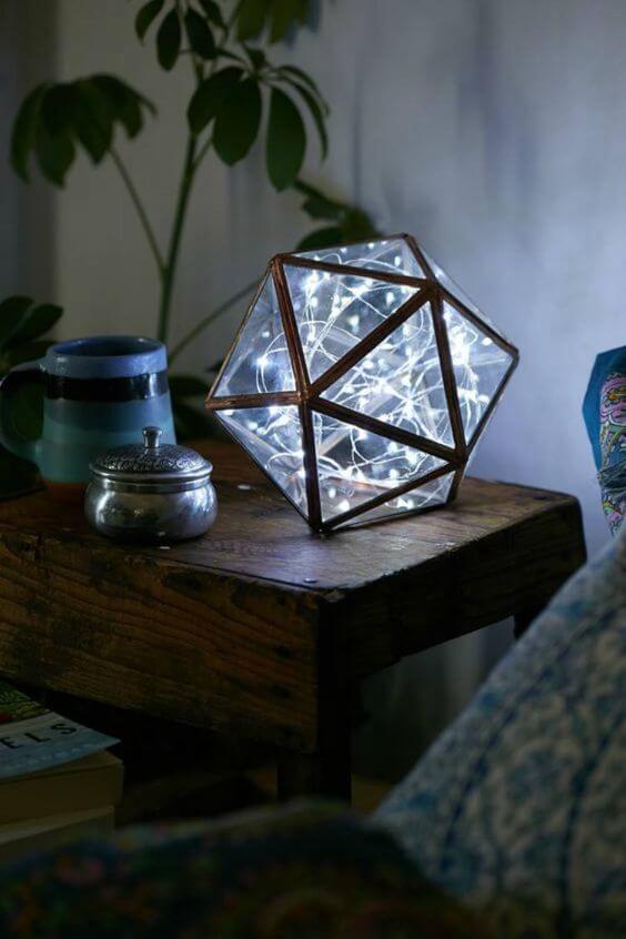 This DIY Lantern for a Side Table is a stunning way to bring soft, magical light into your living space. The geometric frame filled with fairy lights creates a modern look while still keeping a cozy glow.