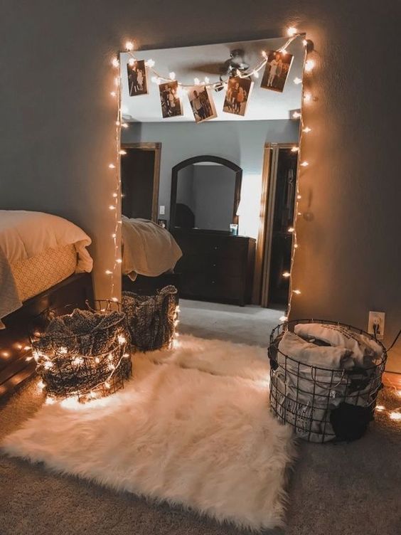 This Lighted Mirror with Fairy Lights is a wonderful way to make your room glow while also giving your mirror a stylish frame.