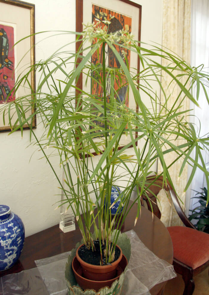 This quirky plant grows tall, umbrella-shaped stems and thrives in low-light bathrooms. It loves wet feet, so don t worry about overwatering it.