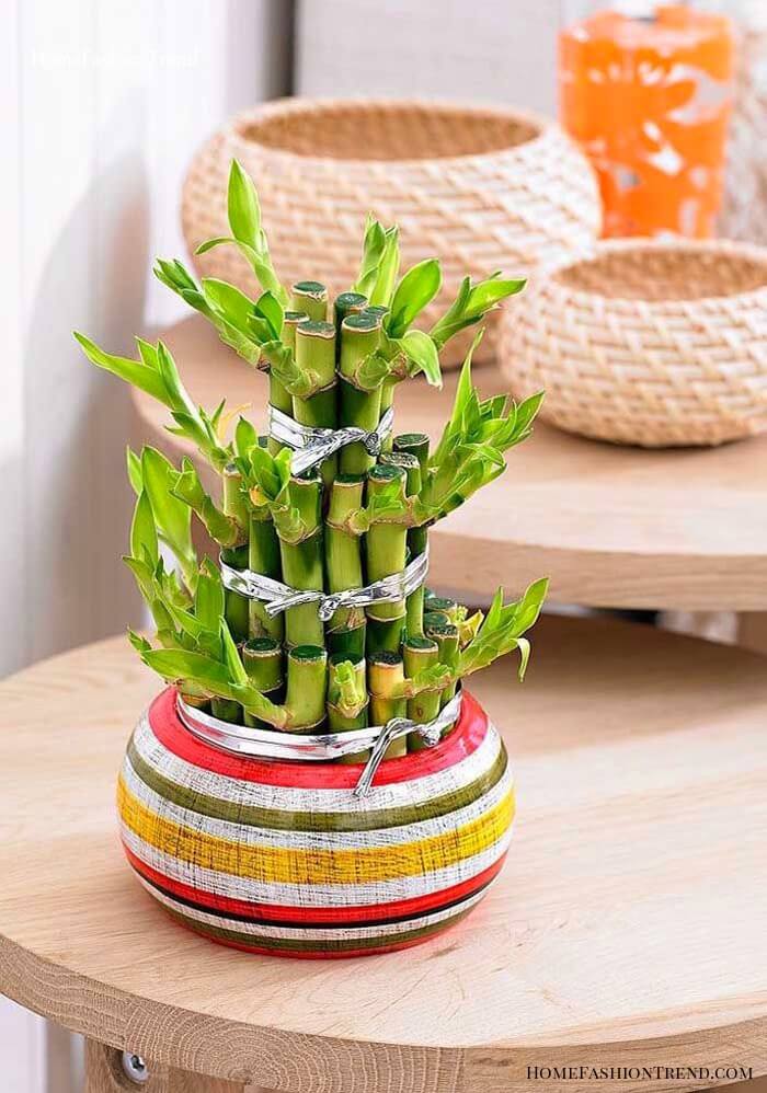 Technically not bamboo, but it sure looks like it. Lucky bamboo grows just fine in low light and water. You can style it in pebbles, vases, or small pots; it s very adaptable.