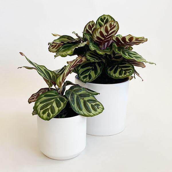 Known for its striking patterned leaves, the prayer plant folds its foliage at night, hence the name. It likes medium to low light and appreciates high humidity.