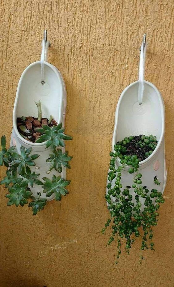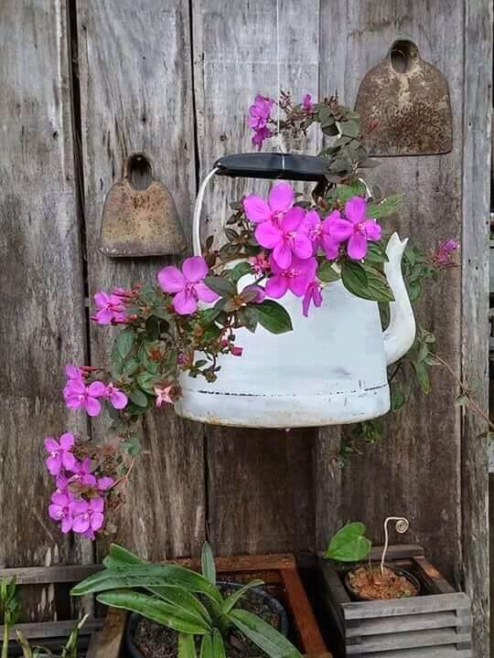 It is great to combine greenery with household utensils in a creative way. Instead of throwing them out, let’s give them a new “mission”. Even if you have a large space or limited space, there are many ideas here that will suit the areas of space that you have.