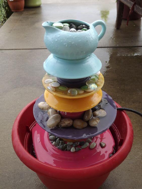 #2 DIY Water Fountain Using Terracotta Pots And Old Dishes