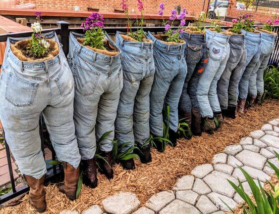 If you’re ready to stop traffic in your garden (or at least get your neighbors talking), this row of upcycled jeans-turned-planters is the way to do it.