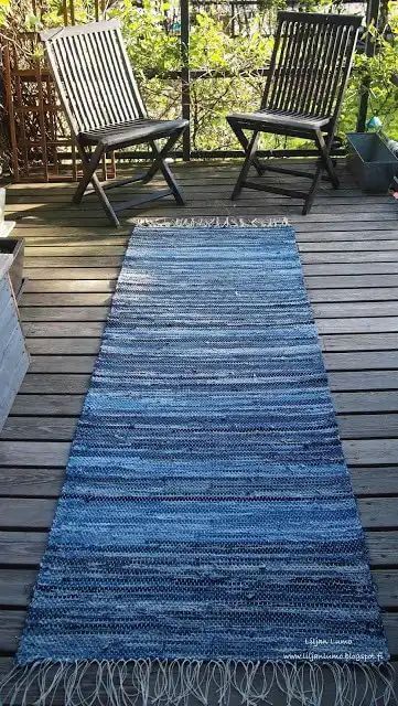 Step 1: Cut your jeans into strips about 1 inch wide and 8â10 inches long. Vary the shades and textures for interest.