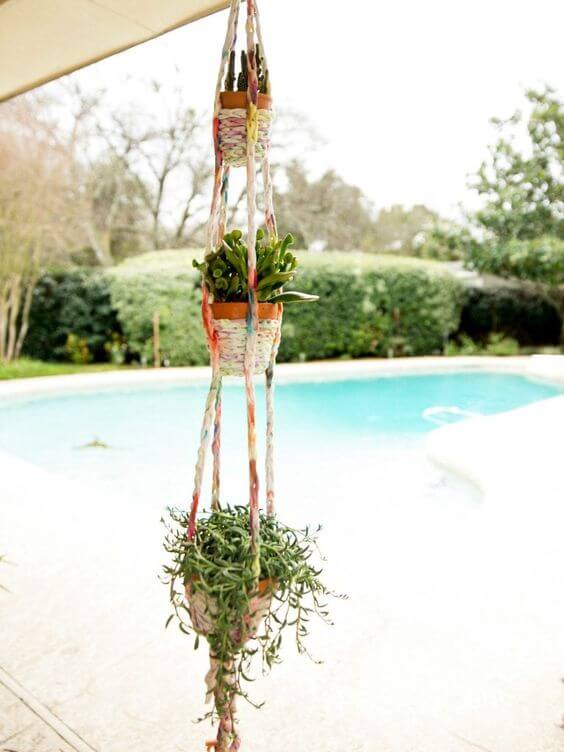#4. Tie-Dyed T-Shirts Turned Easy DIY Boho Hanging Planter
